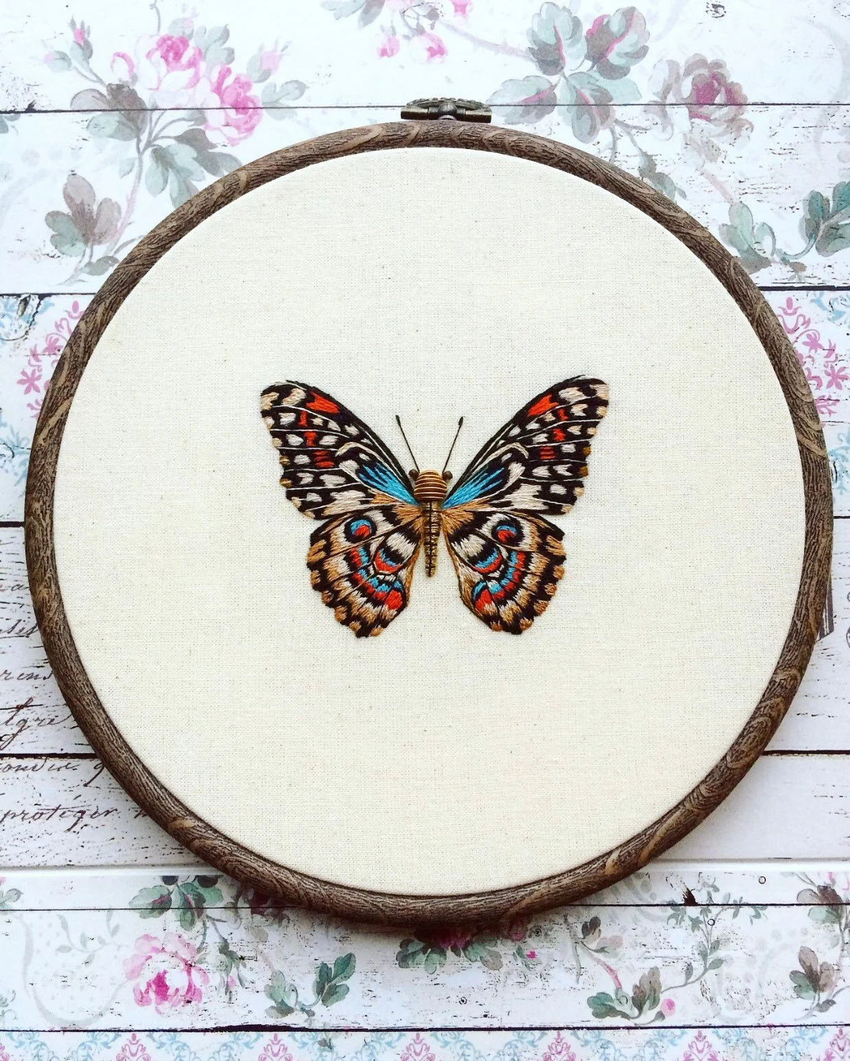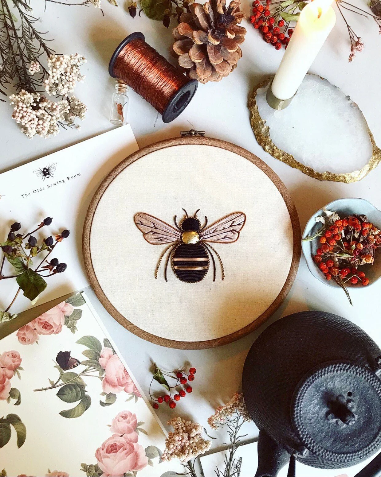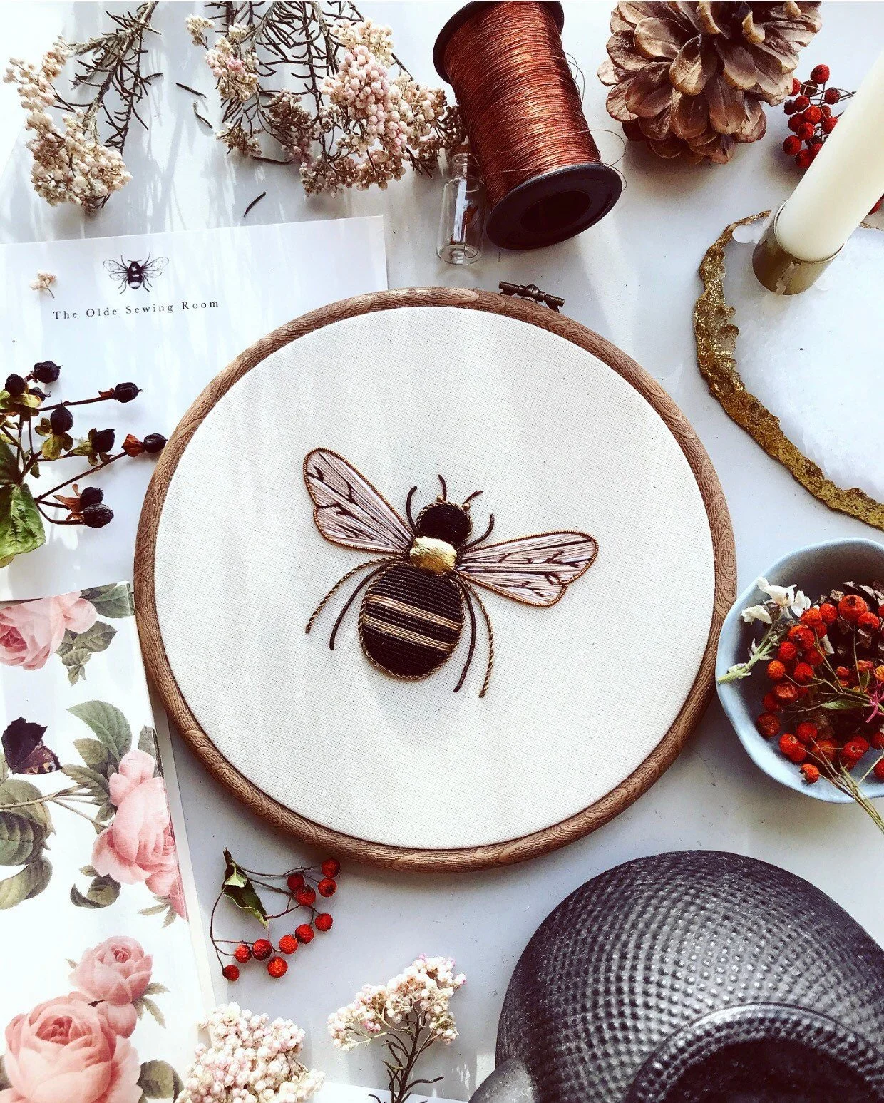 Embroidered on a unbleached, 100% natural cotton and framed in a 7" oval wooden effect hoop
