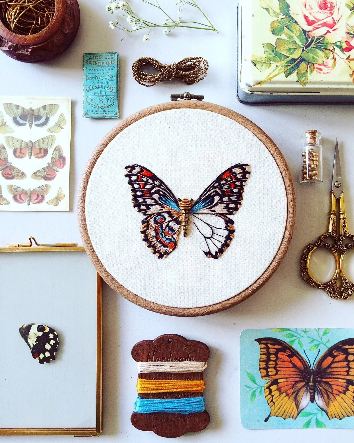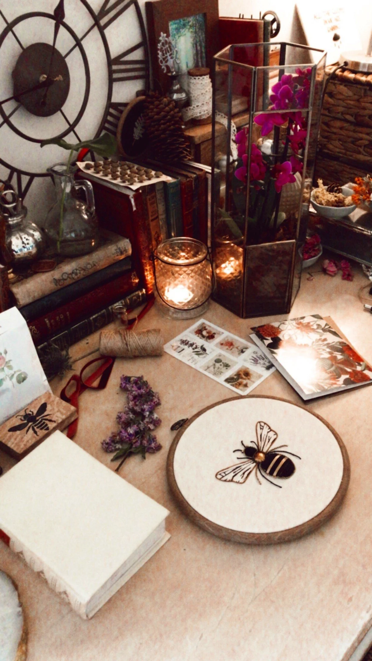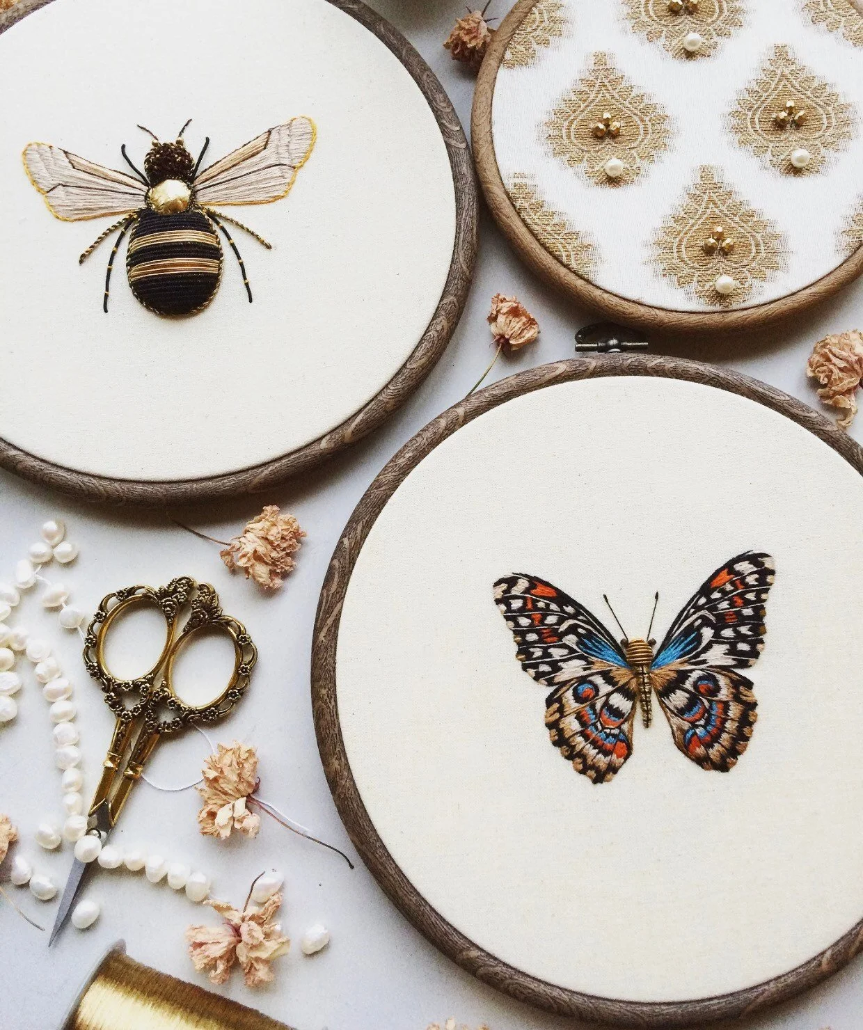 Embroidered on a unbleached, 100% natural cotton and framed in a 7" oval wooden effect hoop